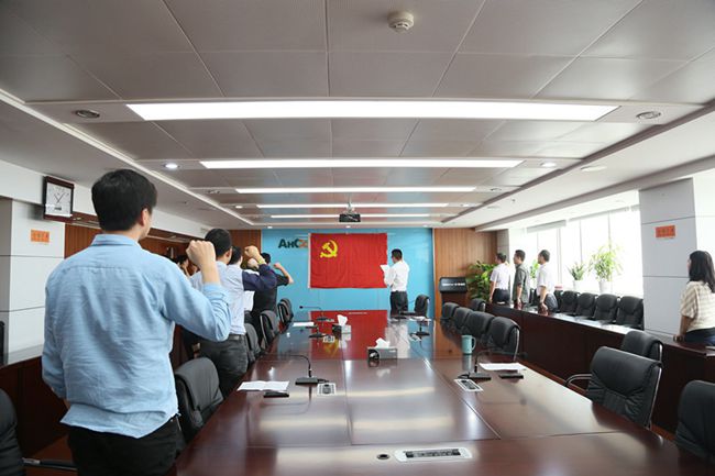 2015年7月1日上午,安糧國際黨支部在15樓會議室舉行“新黨員宣誓、老黨員重溫入黨誓詞”暨迎接中國共產(chǎn)黨成立94周年活動。