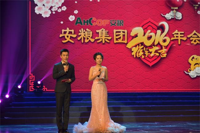 春溢安糧喜滿懷,金猴獻(xiàn)瑞報(bào)春來。2016年1月27日下午,安糧集團(tuán)2016年年會(huì)在解放軍電子工程學(xué)院禮堂盛大舉行,國貿(mào)集團(tuán)黨委副書記、總經(jīng)理包祥華、副總經(jīng)理、總會(huì)計(jì)師程保銀、總經(jīng)理助理呂蓓、安糧集團(tuán)、安糧控股各級(jí)領(lǐng)導(dǎo)與來自安糧系統(tǒng)各單位的共900余名同事歡聚一堂,共迎新年。
