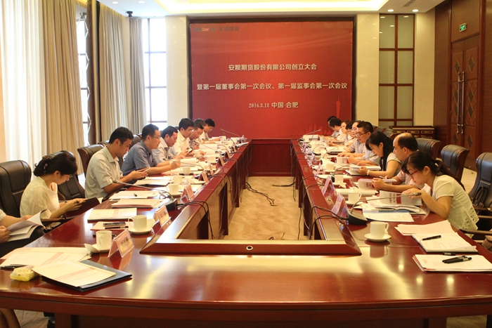 2016年8月18日,安糧期貨股份有限公司創(chuàng)立大會(huì)暨第一屆董事會(huì)第一次會(huì)議、第一屆監(jiān)事會(huì)第一次會(huì)議在稻香樓賓館徽苑巢湖廳隆重召開(kāi)。公司股東單位領(lǐng)導(dǎo)及股東代表,安糧期貨經(jīng)營(yíng)管理層等相關(guān)人員出席了會(huì)議。大會(huì)審議通過(guò)了《安糧期貨股份有限公司籌辦情況報(bào)告》、《安糧期貨股份有限公司章程》、《安糧期貨股份有限公司股東大會(huì)議事規(guī)則》等13個(gè)議案,審議通過(guò)了安糧期貨股份有限公司第一屆董事會(huì)、監(jiān)事會(huì)、經(jīng)營(yíng)管理層人選。