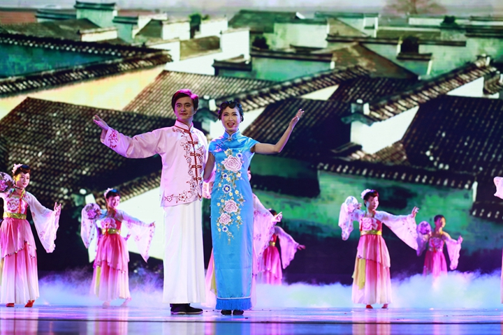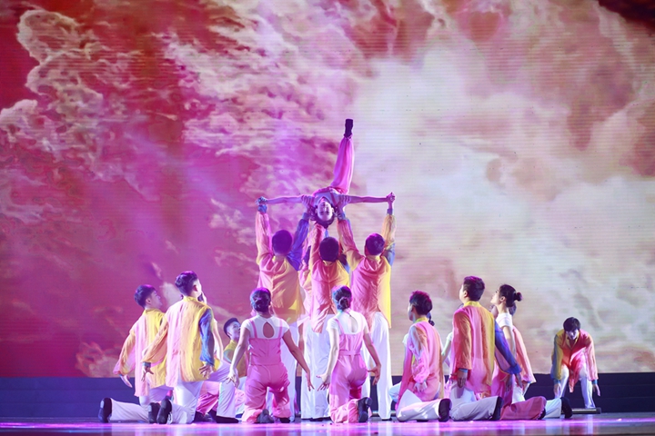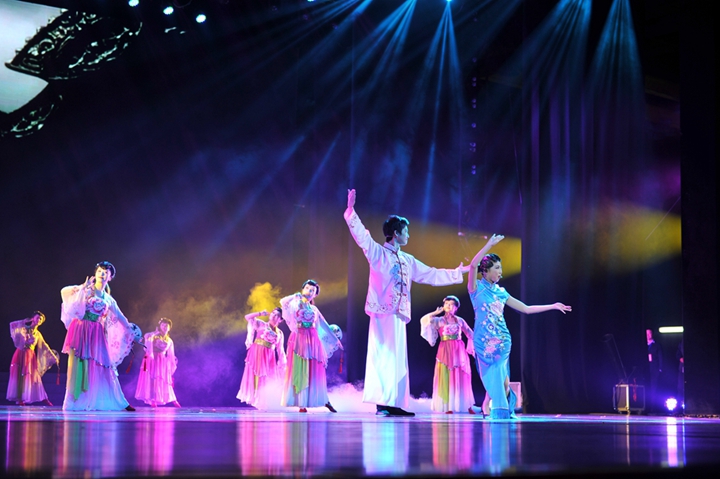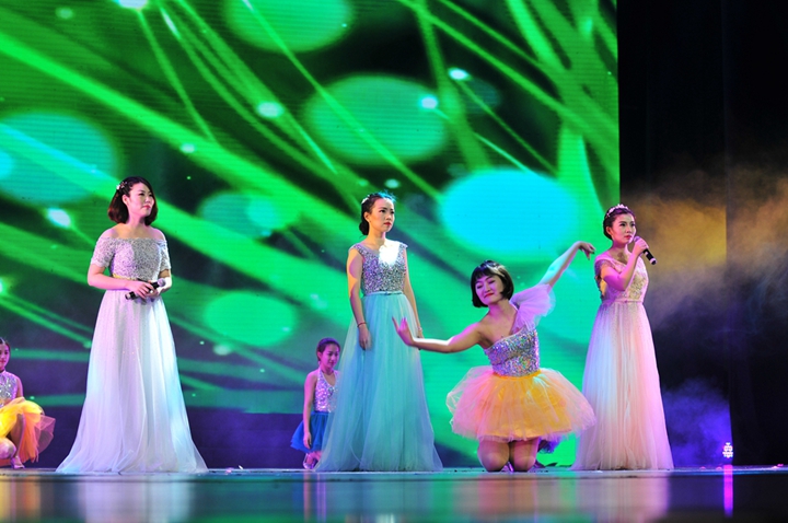 表彰結束后,安糧200余名員工獻上了悉心準備、精彩紛呈的文藝演出。演出以“乘風追夢”、“逐夢新生”、“夢想騰飛”三個篇章呼應安糧集團四十年的歷史,涵蓋傳統(tǒng)黃梅歌舞、情景舞蹈、現(xiàn)代舞蹈、情景劇、器樂演奏以及安糧、控股領導班子參演的詩朗誦等不同風格的節(jié)目。安糧員工曼妙的舞姿、出色的演技、動情的演繹折服了在場的觀眾,一次次將演出推向高潮,現(xiàn)場掌聲迭起。慶典在描寫安糧蓬勃發(fā)展,永續(xù)輝煌的大型歌舞《新征程 新希望》中落下帷幕,安糧集團成立四十周年慶典圓滿結束,安糧集團四十周年系列慶?;顒又链水嬌蠄A滿的句號。