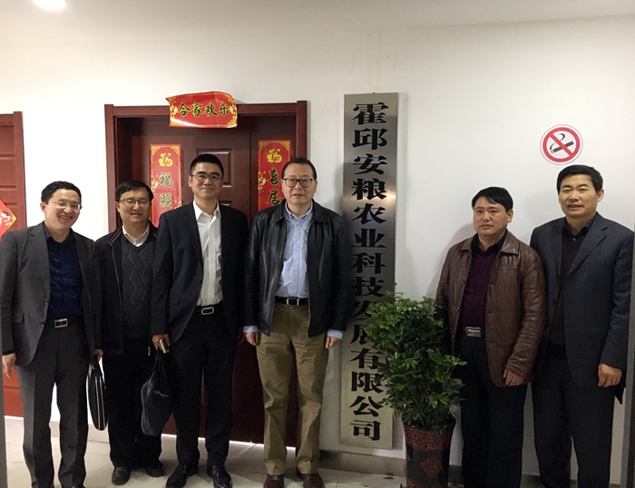 2017年3月9日,安徽國貿(mào)集團(tuán)控股有限公司黨委書記、董事長范陽,副總經(jīng)理程保銀,綜合業(yè)務(wù)部總經(jīng)理王斌等一行四人在安糧實業(yè)總經(jīng)理吳國杰、總經(jīng)理助理高龍的陪同下,赴霍邱安糧農(nóng)業(yè)科技發(fā)展有限公司(以下簡稱“霍邱安糧”)進(jìn)行調(diào)研考察。