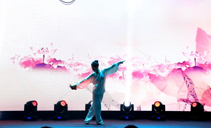 才藝展示環(huán)節(jié),選手們拿十八般武藝,各顯其能。一身素衣、文劍配身的王毓薇似仙子臨凡,在水墨丹青的畫卷中,挑云撥霧,仙姿綽約;李雨馨如青蓮?fù)癯觯w指弄弦,撥一曲《酒狂》,古琴雅韻傳新聲;而有著溫柔端莊主持風格的宣麗萍,意外地用充滿異域風情的肚皮舞,給我們展示了多才和熱辣的一面。