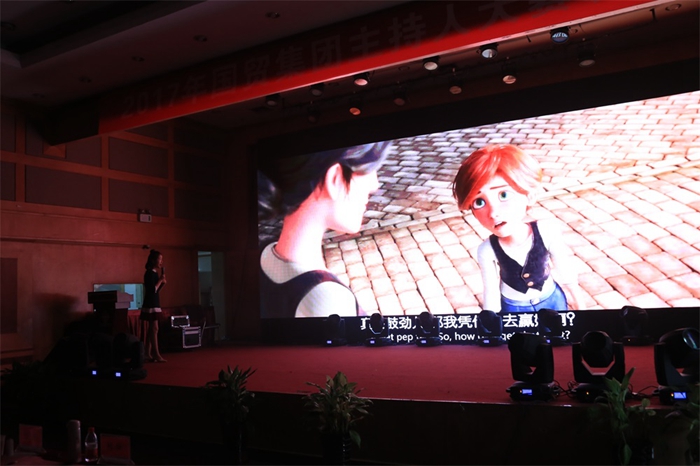 決賽分素質(zhì)表現(xiàn)、才藝展示、模擬主持等三個環(huán)節(jié)。素質(zhì)表現(xiàn)是由選手模仿或者自己設(shè)計一段節(jié)目進行現(xiàn)場主持展示,考驗的是選手作為主持人的基本功底。安糧的選手們準備充分、各出心裁,有美食脫口秀、“國貿(mào)詩詞大會”,還有“國貿(mào)快訊”、國貿(mào)春晚等等。其中賈雙雙以少兒節(jié)目“國貿(mào)大風車”主持人的身份登場,以其俏皮可愛的風格、親切流暢的主持贏得現(xiàn)場“小伙伴”們的掌聲。