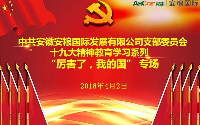 2018年4月2日,為深入開展十九大會議精神教育學(xué)習(xí),豐富黨員活動日形式,安糧國際黨支部組織黨員、團(tuán)員集中觀看大型紀(jì)錄電影《厲害了,我的國》。