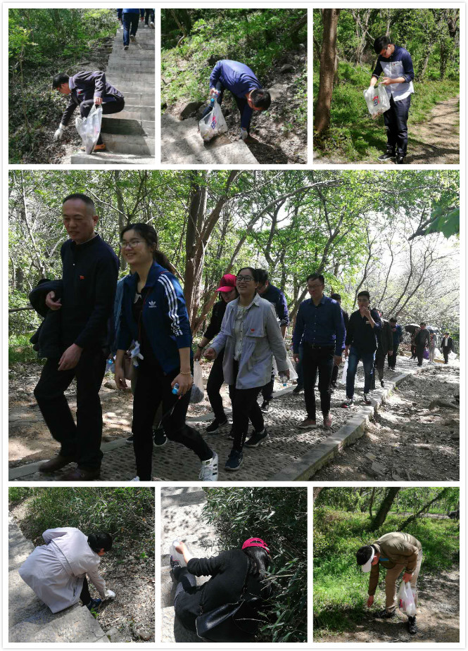 在烈士紀念碑前,全體黨員佩戴黨徽面對黨旗莊嚴宣誓,重溫入黨誓詞并向革命先烈鞠躬致敬。隨后通過參觀安徽革命烈士事跡陳列館了解歷史真相,追思革命先烈豐功偉績,學習先烈志士先進事跡,在講解員的生動解說中,大家深刻體會了革命先烈為人民幸福前仆后繼的獻身精神,學習了革命先烈對黨忠誠的崇高風范。參觀結束后,黨員們從陵園出發(fā)登頂大蜀山,沿途拾撿垃圾,還烈士一片長眠凈土。在我們的影響下,登山群眾紛紛加入到綠色行動中來,撿起小道上丟棄的空水瓶、零食包裝。。。更有親子行的父母教育孩子要以我們?yōu)榘駱?,從小養(yǎng)成不隨地亂扔垃圾的好習慣,為美化生活環(huán)境做出自己的小小努力。