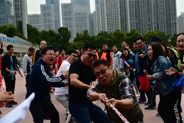 上午9點半,在簡短的開幕式后,別開生面的競賽項目陸續(xù)登場,八支隊伍各顯風(fēng)采。五人六足項目首先登場,步伐一致是該項目的制勝法寶,東倒西歪的令人捧腹,中途摔倒的令人嘆息,安糧地產(chǎn)代表隊最終勇拔頭籌;摸石過河考驗手足協(xié)調(diào),安糧期貨熊青寶快速突圍,棋高一著;跳大繩的關(guān)鍵是快和穩(wěn),安糧國際一鼓作氣,幾乎零失誤,遙遙領(lǐng)先;踢毽子比賽靈巧之中顯真功夫,集團(tuán)本部方嘉亮身手不凡,技壓群英;自行車競慢,平靜中見驚奇,合肥建工黃玉璟獨樹一幟;托球接力跑,一考凌波微步,二比掌上功夫,安糧實業(yè)笑到最后;呼啦圈競走難在“左右互博”,安糧小貸張媛媛最具神通;拔河項目是力量的較量,建工一隊勢如犇牛,盡展雄風(fēng);滾鐵環(huán)項目,作為童年的回憶,也漸漸成為回憶中的項目,安糧控股潘冬生副總裁帶大家領(lǐng)略了老前輩的少年風(fēng)采;50米折返跑接力作為本屆比賽的壓軸大戲,最為矚目,集團(tuán)聯(lián)隊一騎絕塵!十項比賽結(jié)束,“有趣”的一天也臨近尾聲,8支隊伍各領(lǐng)風(fēng)騷,獎牌背后,團(tuán)結(jié)奮進(jìn)是制勝的終極秘訣。