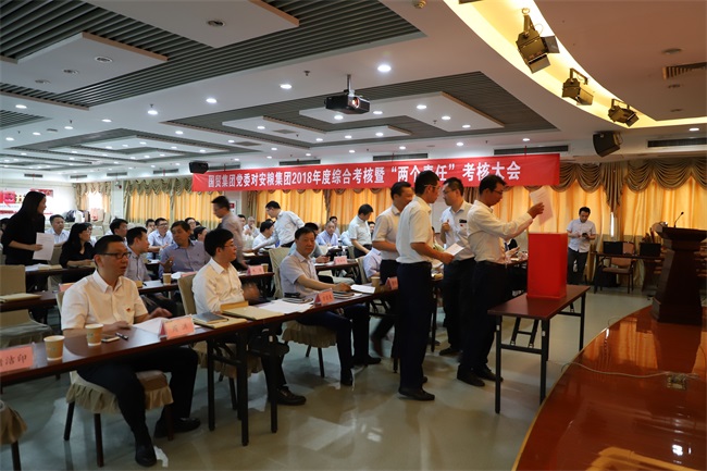 會議最后,參會人員根據現場述職和書面述職,從企業(yè)黨建、經營業(yè)績、團結協作、作風形象及落實黨風廉政建設“兩個責任”等多個維度對安糧集團(控股)領導班子進行民主測評及評議,并進行了現場投票。