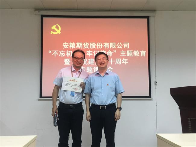 主講環(huán)節(jié)結束,黨支部書記汪勇做了總結發(fā)言,首先對此次讀書會各位主講人充分認真的準備表示贊揚,我們在日常工作、學習和生活中就是要有這種認真的態(tài)度,不斷積累不斷提高;讀書會為我們提供了學習交流和知識展現的場所,全體員工要提高學習能力和勁頭,多些領悟,把每件事做精做專,希望大家積極加入每一次的活動。同時汪書記強調今年是中華人民共和國成立七十周年,“不忘初心、牢記使命”主題教育正當其時,各位黨員要認真領會主題教育相關精神,用習近平新時代中國特色社會主義思想和黨的十九大精神武裝頭腦、指導實踐、推動工作,更加自覺的為新時代黨的歷史使命而奮斗。全體安糧期貨人要腳踏實地,盡職盡責、敬業(yè)奉獻,砥礪前行,努力做新時代的奮斗者。
