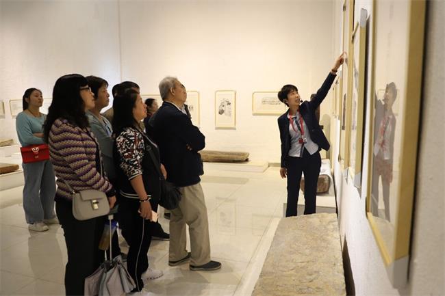 博物館內(nèi)青墻黛瓦、翹角飛檐,處處展示著徽州文化的獨(dú)特魅力。在講解員的帶領(lǐng)下,大家先后參觀了徽派石雕瑞獸展廳、古徽州木雕展廳、石刻人物造像展廳、百匾堂展廳等地方。一棟棟矗立于展區(qū)“無夢園”中的清代老宅給了大家視覺上的直接震撼,館中的民俗用品更將大家?guī)Щ亓送舻臅r光。