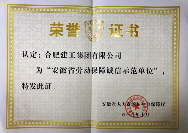 合肥建工榮獲“安徽省勞動(dòng)保障誠(chéng)信示范單位”稱號(hào)