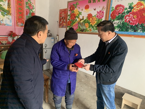 隨后,曹訓(xùn)立、孫毅分別帶隊(duì),進(jìn)村上門,逐一走訪了15名七里棚村困難老黨員,實(shí)地了解了他們的生活狀況,向他們送達(dá)了安糧集團(tuán)黨委和全體黨員同志的慰問和關(guān)懷。