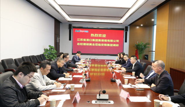 江蘇省港口集團(tuán)集裝箱公司總經(jīng)理胡美全到安糧集團(tuán)調(diào)研