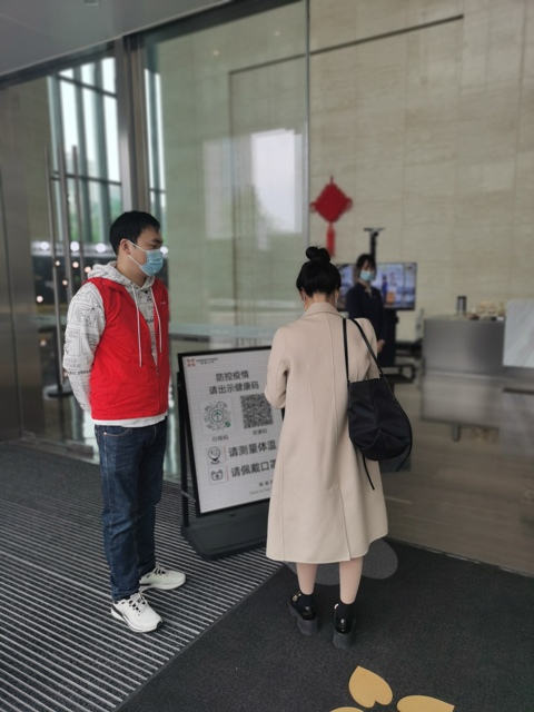 面對突如其來的新一輪嚴(yán)峻疫情,早高峰時(shí)期員工進(jìn)入大樓前的雙碼核驗(yàn)和測量體溫工作,導(dǎo)致在入口處排起長隊(duì),影響同事們按時(shí)到崗,這給安糧中心物業(yè)管理帶來了難題。安糧團(tuán)委在集團(tuán)黨委的指示下聞令而動(dòng)、迅速集結(jié),來自集團(tuán)團(tuán)委各下屬支部的團(tuán)員青年志愿者們,在做好個(gè)人防護(hù)的基礎(chǔ)上,穿起“紅馬甲”,主動(dòng)申請投身到疫情防控工作中,大大加快了早高峰通行效率。