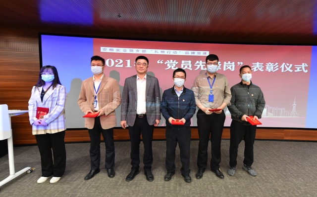 2022年4月28日上午,安糧實業(yè)黨支部在安糧中心3樓報告廳舉行“黨員先鋒崗”表彰儀式,引導(dǎo)黨員創(chuàng)先爭優(yōu)、攻堅克難。梁亮、李過、王慧、楊曉東、楊友勝五位同志榮獲2021年“黨員先鋒崗”稱號。