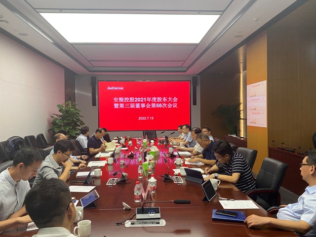 7月13日,安糧控股在安糧中心一號(hào)樓3208會(huì)議室召開2021年度股東大會(huì)暨第三屆董事會(huì)第56次會(huì)議,股東代表、董事會(huì)、監(jiān)事會(huì)及經(jīng)營層成員參加會(huì)議。會(huì)議由曹訓(xùn)立董事長主持。