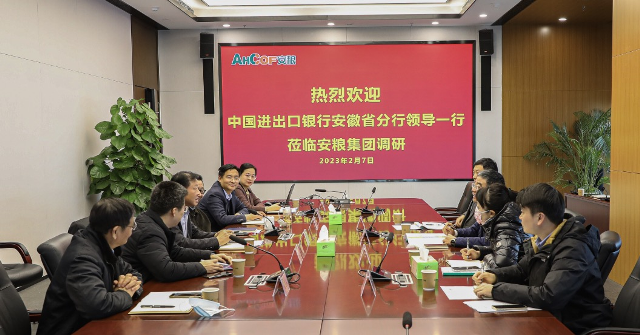 2023年2月7日,中國進出口銀行安徽省分行武建軍行長、王宇輝副行長等一行到公司調(diào)研。安糧集團、安糧控股公司領(lǐng)導曹訓立、周洪、楊榮山、程松林及相關(guān)部室負責人熱情接待了武行長一行并舉行座談。