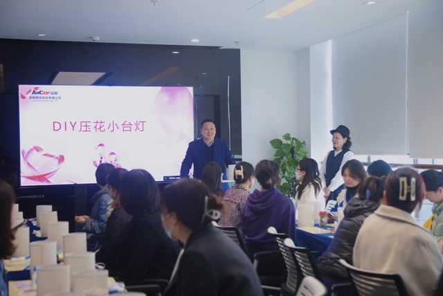 活動期間,花藝?yán)蠋熢敿?xì)講解了壓花臺燈制作方法,參加活動女職工盡情發(fā)揮想象力和創(chuàng)造力,精心挑選壓花材料,巧思創(chuàng)意構(gòu)圖,耐心拈花制作,一盞盞各具特色的壓花臺燈陸續(xù)點(diǎn)亮其樂融融的溫情畫面。