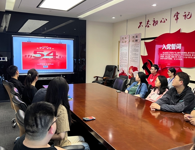 團員們首先集體觀看了五四青年節(jié)創(chuàng)意短片《不被大風吹倒》以及建團百年短片《奮斗者正青春》。