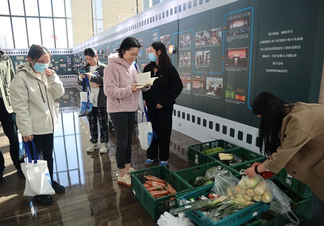 “一本圖書即可換一份蔬菜,還可以得到一個(gè)環(huán)保帆布袋”,活動(dòng)現(xiàn)場(chǎng),工作人員向大樓的職工講解兌換規(guī)則,職工們帶著家中閑置的書籍有序的兌換?!凹依镩e置的書籍有點(diǎn)占地方,賣掉又覺(jué)得可惜,換蔬菜的活動(dòng)正好解決這個(gè)問(wèn)題,而且這些書籍還可以給鄉(xiāng)村小學(xué)的孩子們?cè)黾娱喿x量,這個(gè)活動(dòng)很有意義?!甭毠兞嘀卟硕Y包開(kāi)心的說(shuō)到。