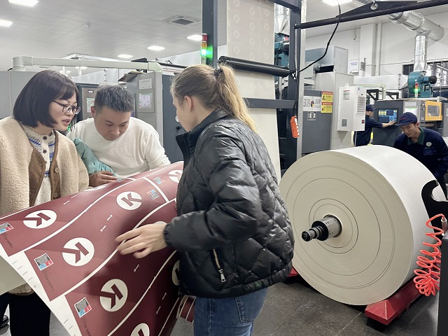 (業(yè)務(wù)員和客戶在紙杯印刷車間對(duì)紙杯印刷進(jìn)行確認(rèn))