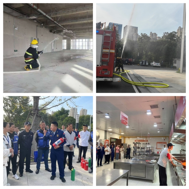 下午3時,消防應(yīng)急演練總指揮下達(dá)演練開始指令。工作人員在預(yù)定地點(diǎn)放置煙霧彈,觸發(fā)火災(zāi)報警,模擬火情發(fā)生場景。安糧中心辦公樓火警警報鳴響,全體職工迅速進(jìn)入緊急疏散狀態(tài),各樓層消防和應(yīng)急救援隊員迅速反應(yīng),有序引導(dǎo)職工從安全出口撤離到避難層。同時,消防隊員全副武裝,封控火場、撲滅火災(zāi)。在火警解除后,救援大隊隊員開展滅火器使用教學(xué)、油鍋起火的預(yù)防和撲救等內(nèi)容,參與演習(xí)的物業(yè)、餐飲安全員們分別用不同的方式進(jìn)行滅火實(shí)操,切身感受了正解與錯誤滅火的后果。