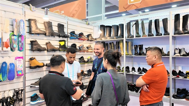 小家電區(qū)域里,安糧的電風扇憑借智能控溫、多檔風速調(diào)節(jié)等功能有效兼顧了節(jié)能與舒適體驗,多樣化的外觀也能輕松適配各種家居風格。鞋類品展區(qū)的勞保工具鞋憑借耐磨防滑、支撐性好的優(yōu)點吸引了建筑、物流等行業(yè)客戶的咨詢。